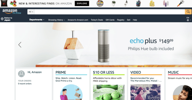 同じAmazonでも、それぞれの国によって言語も異なります。Amazonトップ画面のメニュー項目を見てみましょう。