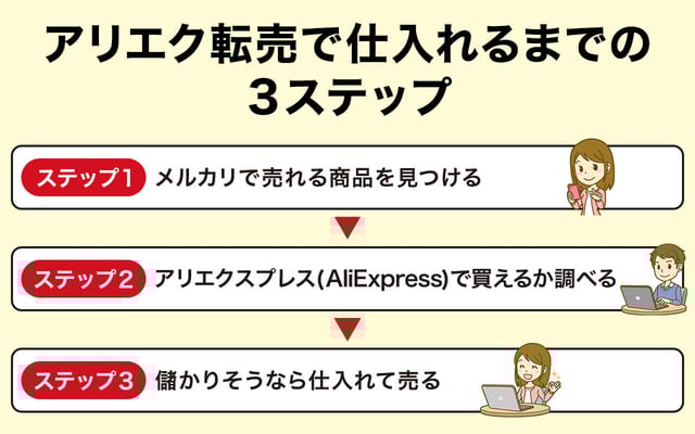 アリエク転売では、仕入れ前のリサーチがとても重要です。ここでは、初心者でも迷わず進められるように、仕入れまでの3つのステップを紹介します。
