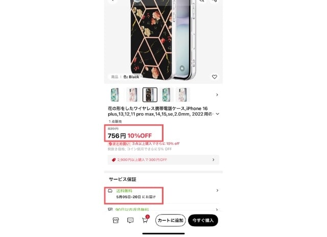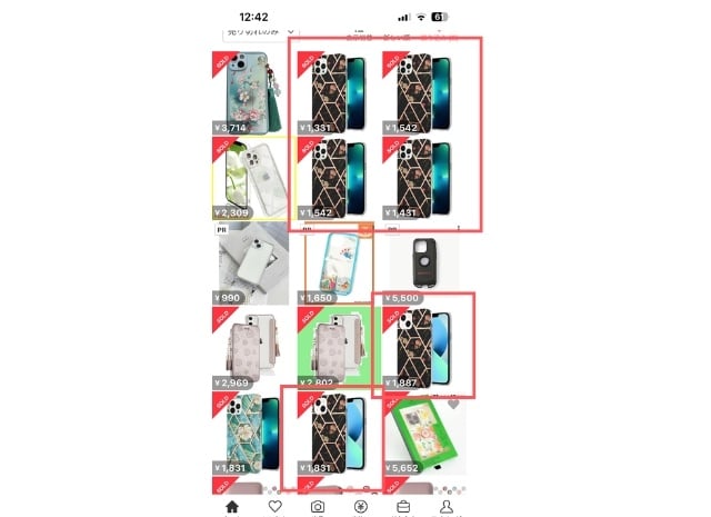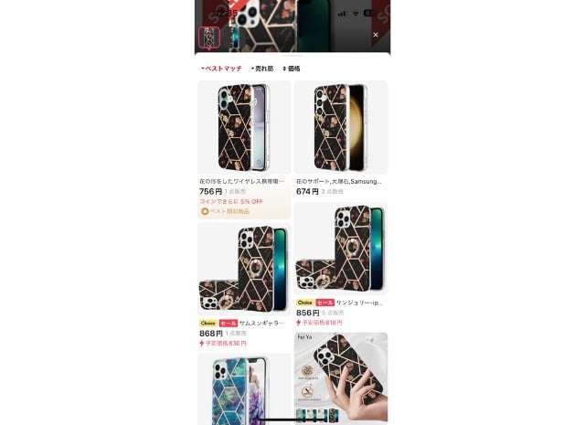 花柄模様のiPhoneの販売画面をスクショで撮影し、アリエクで画像検索してみましょう。