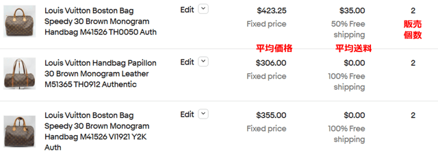レディースのブランドバッグはeBayでの取引が活発なカテゴリーのひとつです。検索1位のワードは「louis vuitton handbags」で、実際に売れた中古品TOP3は以下の結果となりました。