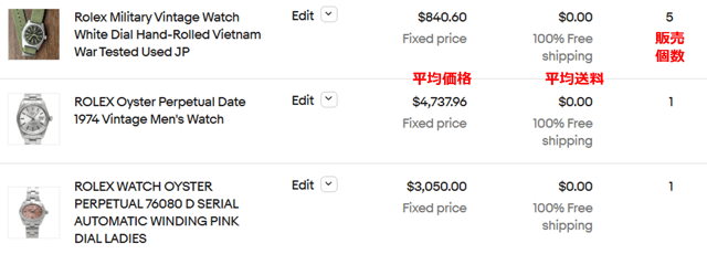 ブランド腕時計のカテゴリーで、最も検索されたキーワードは「rolex」でした。中古品で売れている商品TOP3は、以下のものです。