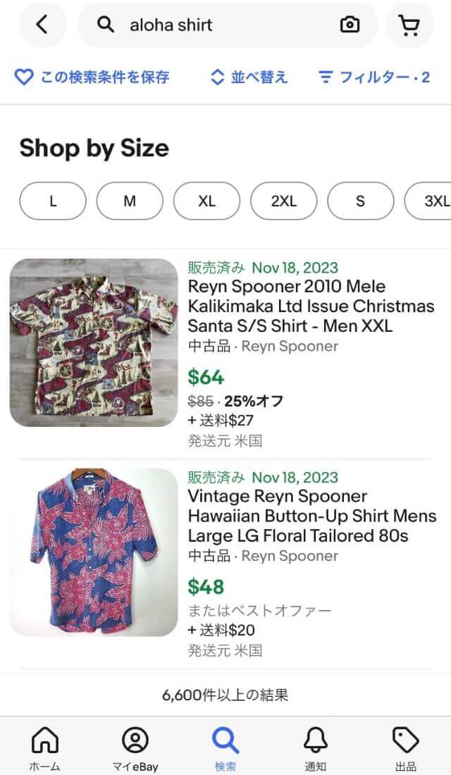 検索はブランド名で絞り込むようにします。「レインスプーナー(reyn spooner)」や「ラルフローレン(Ralph Lauren)」は出品数が多く柄やサイズも豊富です。状態が良いものも多いので初心者におすすめです。