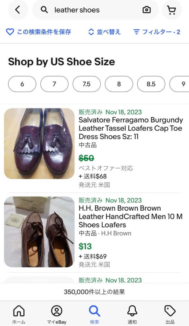 中古の革靴も狙い目です。人気ブランドのものは定価より高くても欲しい人がいます。eBayには、日本で人気のある素材や色の革靴が豊富に出品されています。メルカリやヤフオク!では、出品価格が高くても売れているため儲かる商品といえるでしょう。