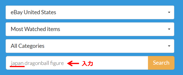 4つめはフリー入力でキーワードを入れていきます。今回は「japan dragonball figure」と入力して、ドラゴンボールのフィギュア人気を見ていこうと思います。