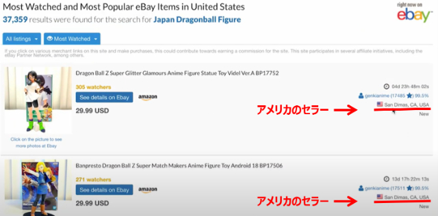 そうすると、日本人セラーの商品も検索結果に出てきましたね。