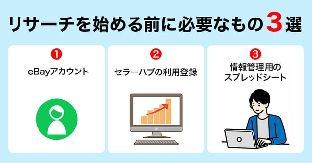 eBayで売れてる商品を調べる前に、以下の3つを準備しておきましょう。