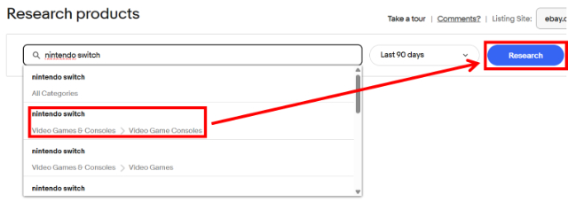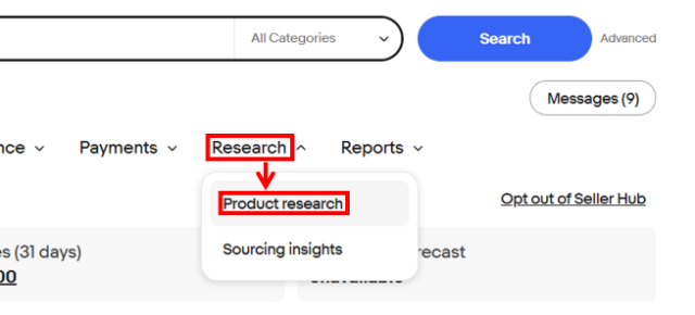 Seller HubにあるResearchタブから「Product research」を選択すればOKです。使い方はTerapeak時代とほとんど変わりません。