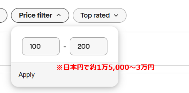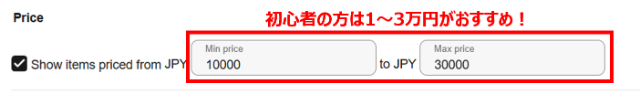 次は「Price」欄を「1~3万円」に設定しましょう。