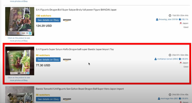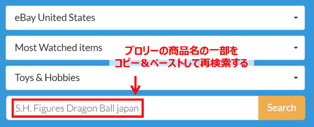 まずは、ブロリーの商品名の一部「S.H. Figures Dragon Ball japan」といったキーワードを使って、WUANTOで再検索します。