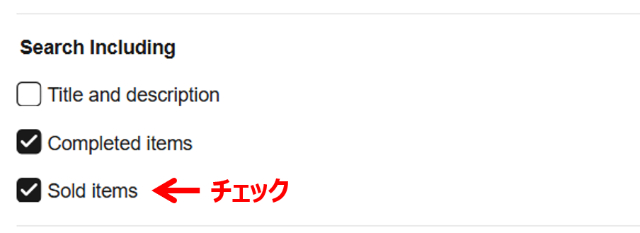 少し下にスクロールして「Search Including」のところにある「Sold items」をクリック。