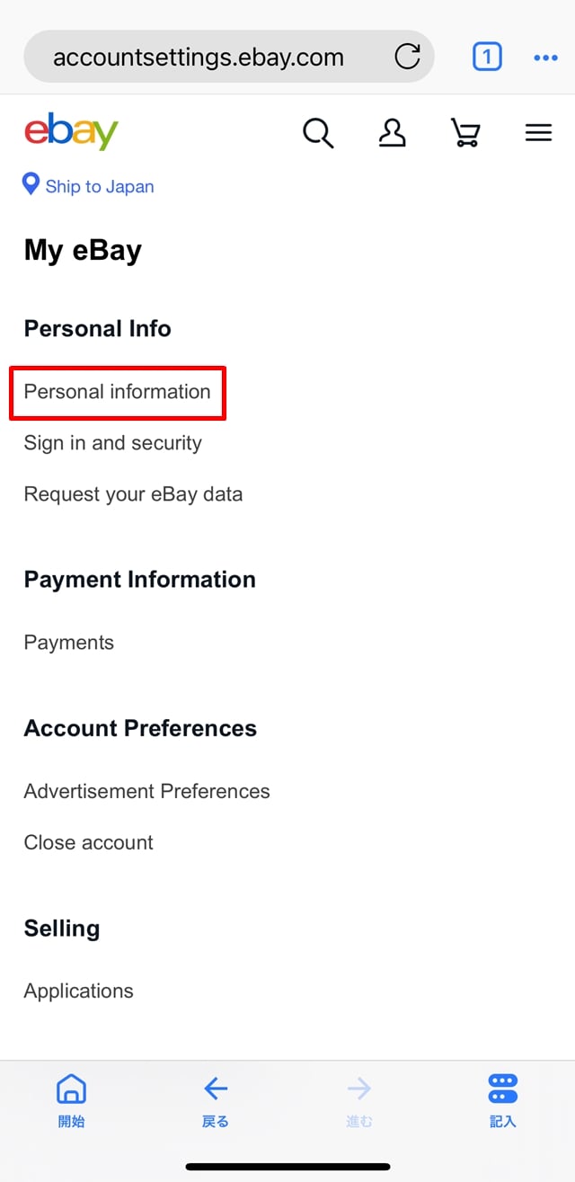 続いて、eBayでの住所変更の方法を画像付きで、初心者の方にも分かりやすく解説します。
