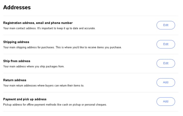 eBayの3種の住所登録
