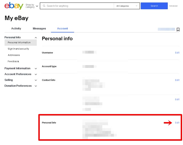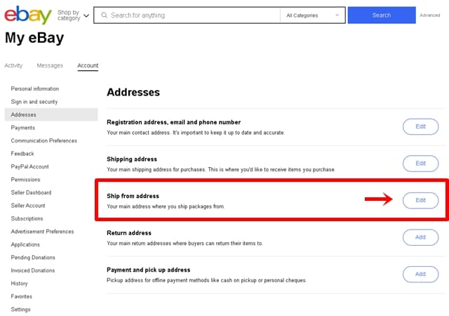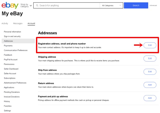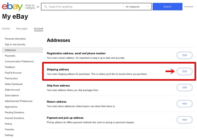 eBayに登録している住所の変更はどこからできますか?