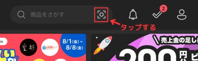 メルカリでは欲しい商品を画像で探せる「画像検索」の機能があります。自分が出品しようとしている商品で検索して、どのような写真が目立っているか見てみましょう。