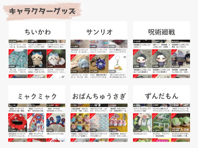- 王道は、ちいかわ、サンリオ、ポケモン、呪術廻戦など