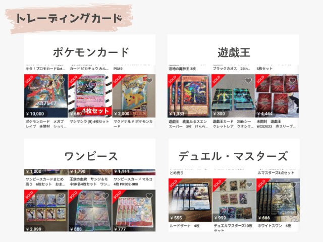 トレーディングカードは、現在カードゲームを楽しんで収集している層はもちろん、昔集めていたカードをまとめて手放す層も多いです。