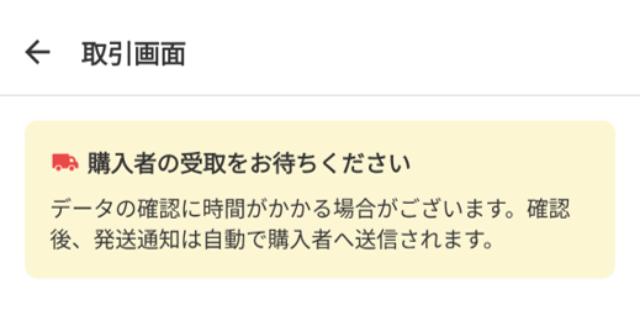 そうすると、最初は「購入者の受取をお待ちください」という画面になります。