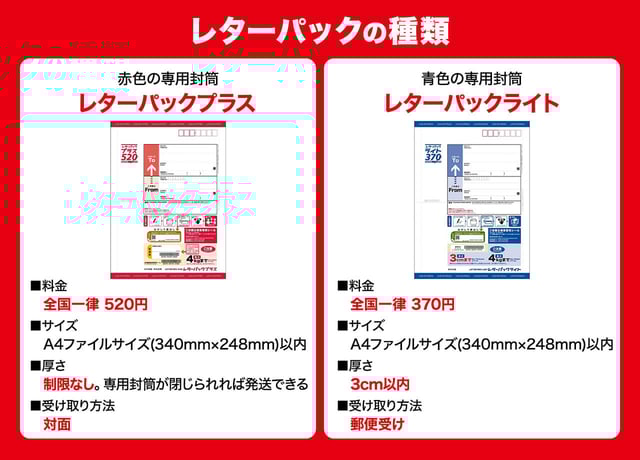 レターパックライト・レターパックプラスの違いもあわせて紹介します。