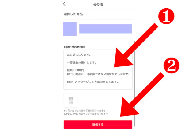 メルカリでは届いた商品が返品するほどではないが、金額に納得していない場合に一部返金ができます。