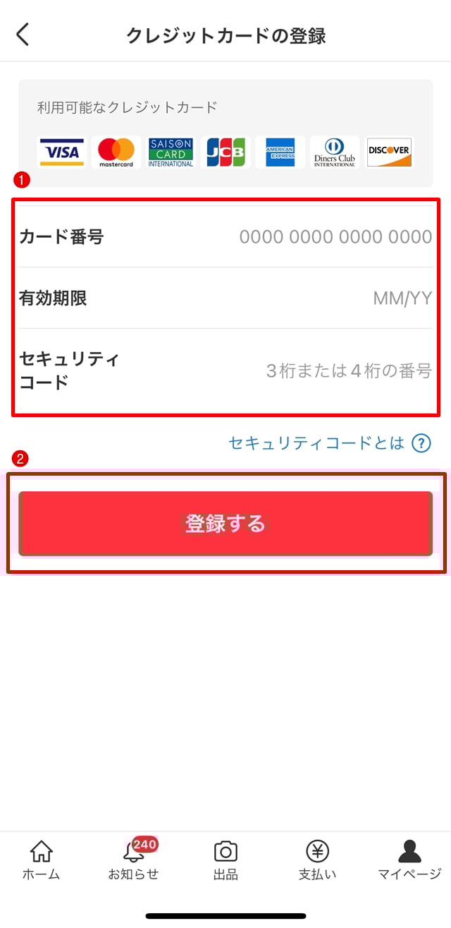 (参考)メルカリ|クレジットカード払い(※別タブで開きます)