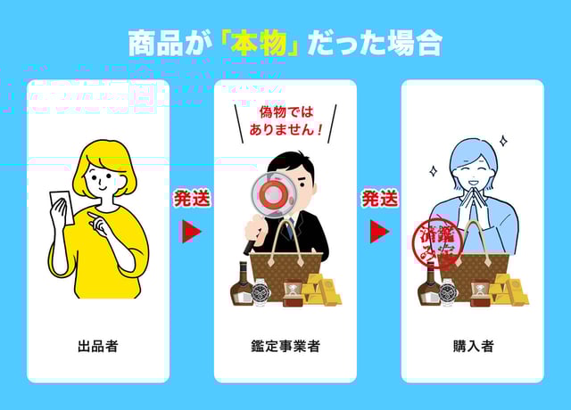 鑑定が済んだ後の取引の流れは、鑑定結果が「本物」か「偽物」のどちらになるかによって異なります。