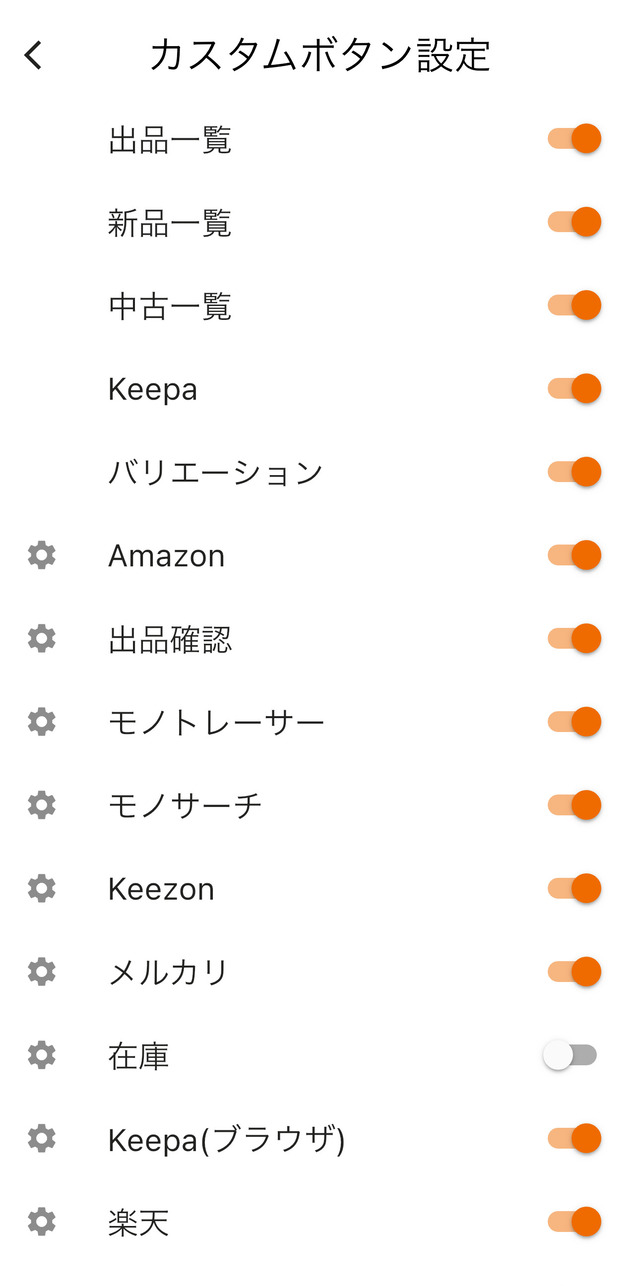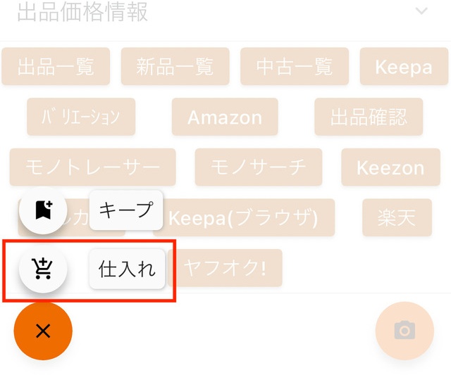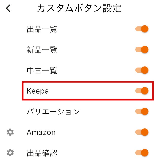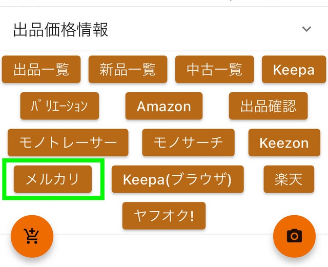 画面下部にカスタムボタンで設定した項目が表示されるので「Keepa(ブラウザ)」を選択します。
