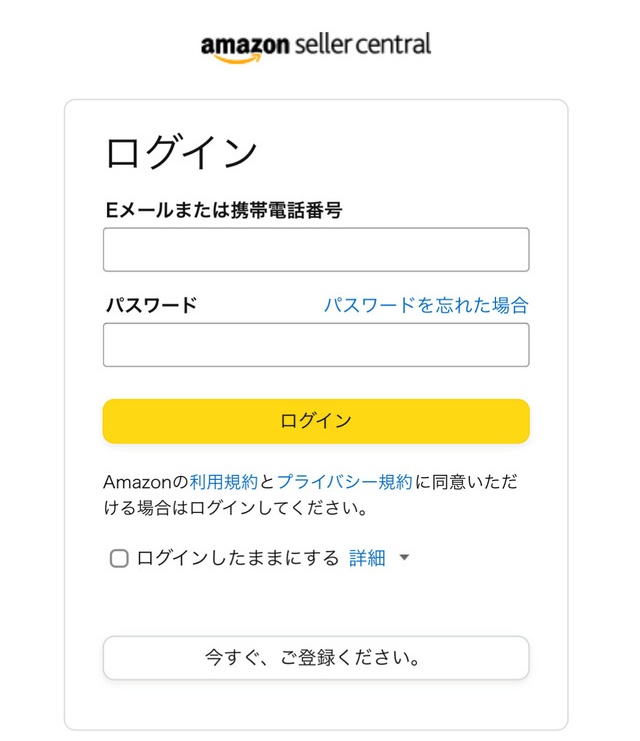 Amazonセラーアカウントのメールアドレスとパスワードを入力し「ログイン」をタップします。