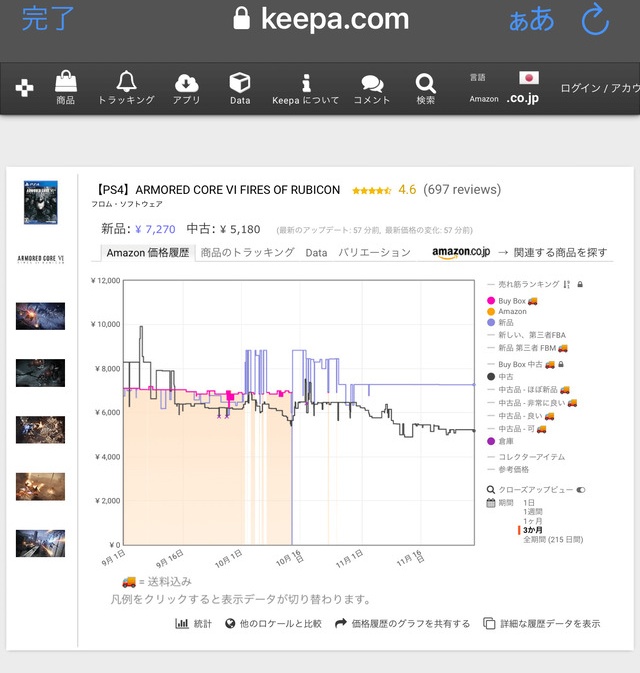 アマサーチからKeepaの価格グラフを表示できるため、商品の価格推移が簡単にわかります。