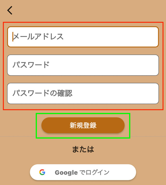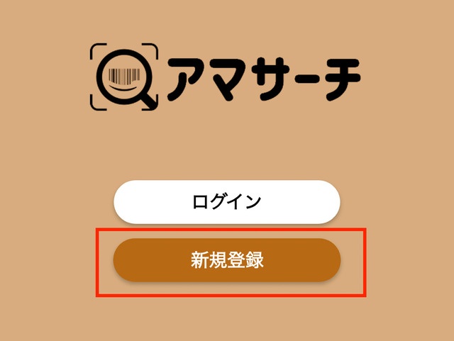 メールアドレスと任意のパスワードを入力して「新規登録」をタップします。 メールアドレスはアマサーチのIDになります。