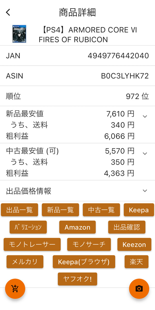バーコードを読み込むだけでAmazonの最安値や販売順位など、せどりに必要な情報が表示されます。