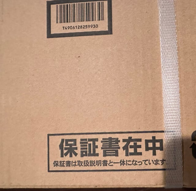 大型商品・高価格帯の商品の場合、保証書が封筒に入れられて、箱の外や側面に貼り付けされていることがあります。