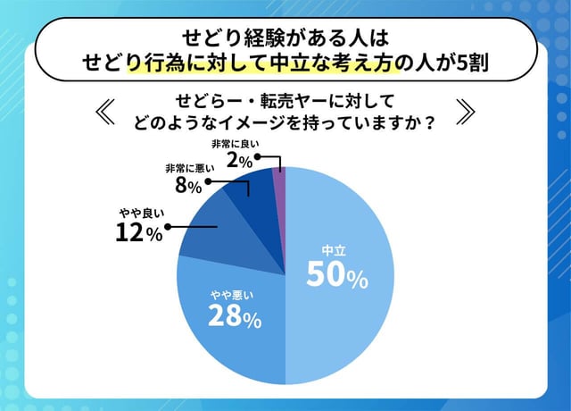 一方で、せどりを経験している人の半分はせどりに対して「中立」の印象を持っており、もっとも多い意見でした。次に「やや悪い」という印象が続きますが、せどり経験者は「非常に良い」という印象を持つ人もいることがわかりました。ただし、全体ではプラスの印象よりもマイナスの印象のほうが多い結果でした。