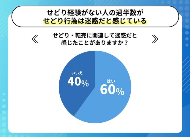 また、今回アンケートした50人のうち6割の人がせどりで迷惑だと感じた経験がありました。この経験からせどりに対してマイナスのイメージが強くなっていると考えられます。