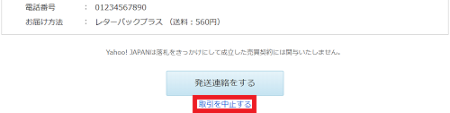 出品者が商品発送連絡を行った後は、ヤフオクのシステム上で「取引の中止」が行えません。